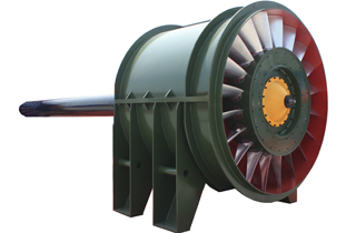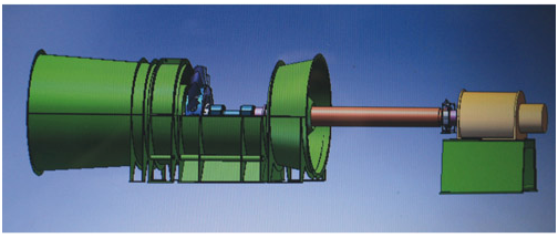 2.風機采用單電機驅(qū)動,電機通過長軸安裝在風機外面,這種安裝方式特別適合大型礦井前后期使用功率差別大的特點,風機設(shè)計不受電機尺寸限制,根據(jù)需要使用不同的電機,節(jié)約能源,更換方便。
